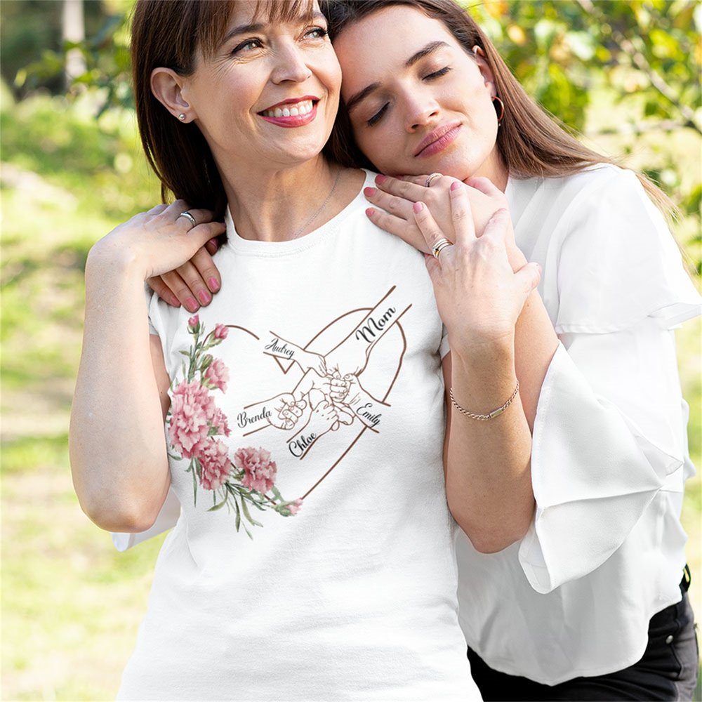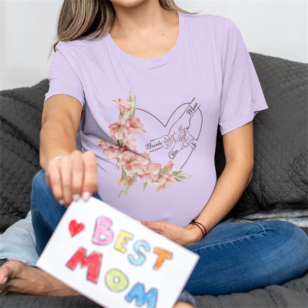 Inspiriert von der mütterlichen Liebe und der Bedeutung des Geburtsdatums, kombiniert es die warmen Elemente von Herzen, Geburtsblumen und Hand-in-Hand-Figuren, unterstützt den individuellen Namensdruck und ist in einer Vielzahl von Farben erhältlich, was dieses T-Shirt zu einem einzigartigen Familienerinnerungsstück für Ihre Lieben macht.