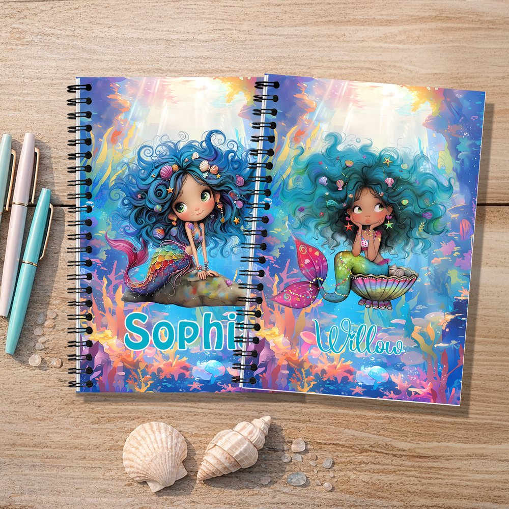 Das Cover unseres Notizbuchs zeigt ein verträumtes Meerjungfrauenmotiv vor dem Hintergrund einer lebendigen Unterwasserwelt, die vor märchenhafter Magie und Fantasie nur so strotzt. Die kühne und doch harmonische Verwendung von Farben, vor allem Blau, Rosa, Lila und Grün, kombiniert mit Lichteffekten, schafft ein starkes Gefühl von Tiefe und visueller Wirkung. Sie können es auch mit dem Namen Ihres Kindes versehen, was es zu einem einzigartigen Lernmittel macht.